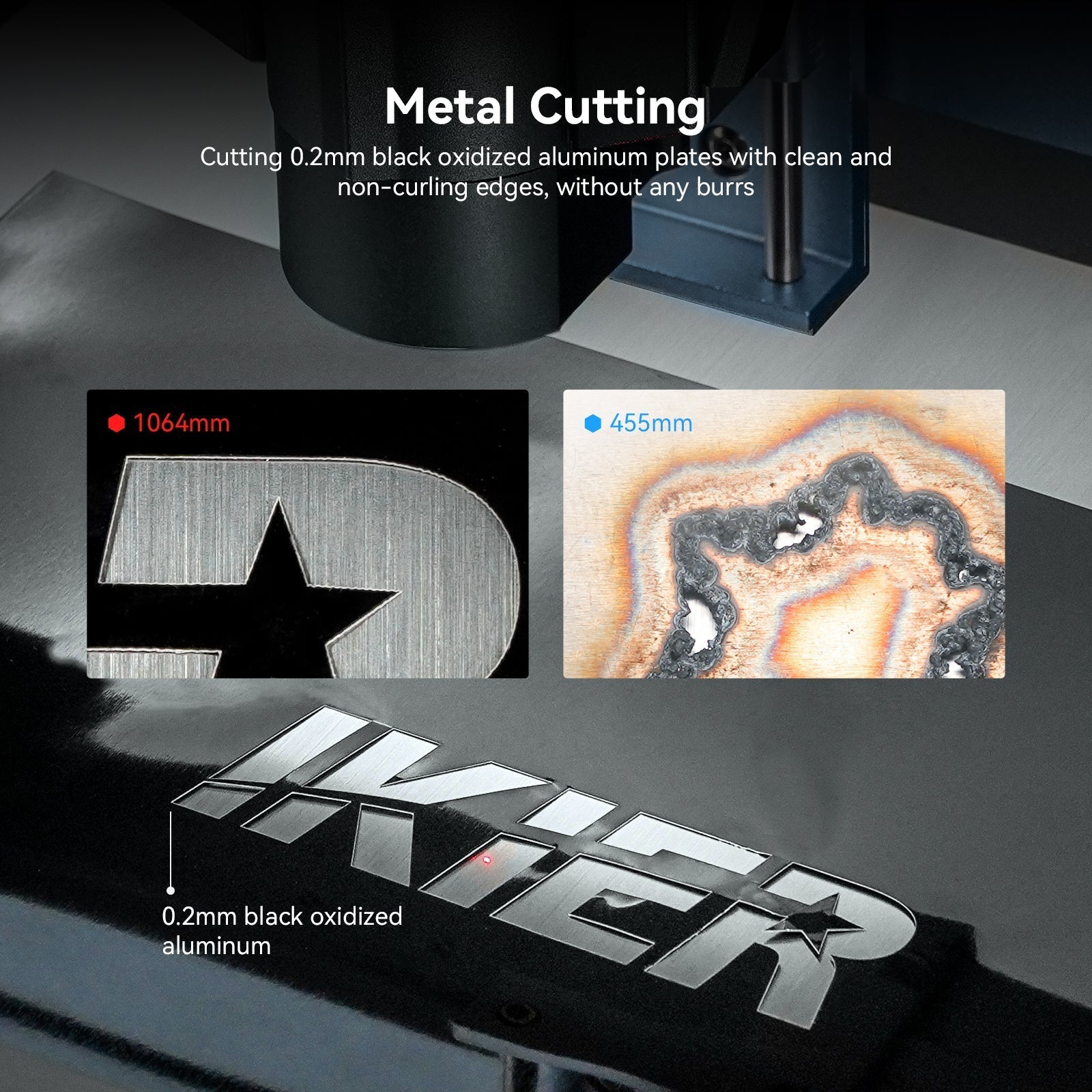 METALLSCHNEIDEN: Mit 20W Faserlaserleistung und 0,03*0,06 ultra-feinem Punkt kann iKier 1064nm leicht 0,2mm Aluminium Visitenkarten in einem Durchgang schneiden;